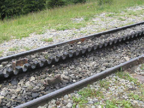 Mitte kahe, vaid kolme rööpaga. Kolmas, hammastega rööbas on keskel. Seetõttu rong