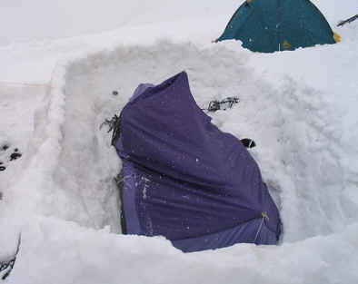 Võimalusel teevad alpinistid telgi ümber kaitsevallid. Olenevalt asukohast